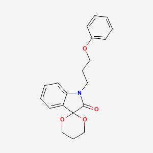 The synthesis of 1’-(3-Phenoxypropyl)spiro[[1,3]dioxane-2,3’-indolin]-2’-one typically involves 1,3-dipolar cycloaddition reactions. These reactions use isatin-derived azomethine ylides and activated olefins to form the spirocyclic oxindole structure . The reaction conditions often include the use of organic solvents and catalysts to facilitate the cycloaddition process. Industrial production methods may involve scaling up these reactions under controlled conditions to ensure high yield and purity .
