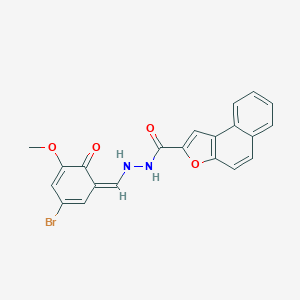 N'-[(Z)-(3-bromo-5-methoxy-6-oxocyclohexa-2,4-dien-1-ylidene)methyl]benzo[e][1]benzofuran-2-carbohydrazide is a useful research compound. Its molecular formula is C21H15BrN2O4 and its molecular weight is 439.3 g/mol. The purity is usually 95%.