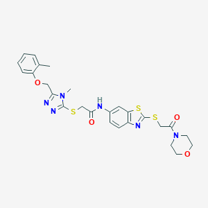 2-({4-methyl-5-[(2-methylphenoxy)methyl]-4H-1,2,4-triazol-3-yl}sulfanyl)-N-{2-[(2-morpholin-4-yl-2-oxoethyl)sulfanyl]-1,3-benzothiazol-6-yl}acetamide
