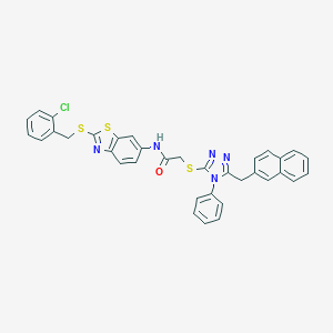 N-{2-[(2-chlorobenzyl)thio]-1,3-benzothiazol-6-yl}-2-{[5-(2-naphthylmethyl)-4-phenyl-4H-1,2,4-triazol-3-yl]thio}acetamide
