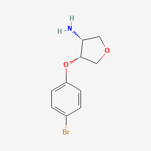 (3R,4R)-rel-4-(4-bromophenoxy)oxolan-3-amine is a chiral compound notable for its structural features, including a bromophenoxy group attached to an oxolane ring with an amine substitution. This compound has garnered interest in medicinal chemistry due to its potential applications in drug development and biological studies.