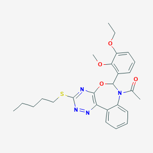 1-[6-(3-ETHOXY-2-METHOXYPHENYL)-3-(PENTYLSULFANYL)[1,2,4]TRIAZINO[5,6-D][3,1]BENZOXAZEPIN-7(6H)-YL]-1-ETHANONE is a useful research compound. Its molecular formula is C26H30N4O4S and its molecular weight is 494.6 g/mol. The purity is usually 95%.