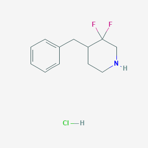 The mechanism of action of 4-benzyl-3,3-difluoropiperidine hydrochloride involves its interaction with specific molecular targets, such as enzymes or receptors. The difluoro groups and the benzyl moiety play crucial roles in binding to these targets, thereby modulating their activity. The exact pathways and molecular targets depend on the specific application and the biological system being studied .