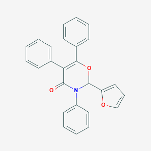 The synthesis of 2-(2-furyl)-3,5,6-triphenyl-2,3-dihydro-4H-1,3-oxazin-4-one typically involves the reaction of furfural with triphenylamine and an appropriate catalyst under controlled conditions. One common method involves the use of a Lewis acid catalyst, such as aluminum chloride, to facilitate the cyclization reaction. The reaction is carried out in an inert atmosphere, typically under nitrogen or argon, to prevent oxidation and other side reactions.