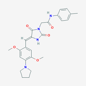 2-{(4Z)-4-[2,5-dimethoxy-4-(pyrrolidin-1-yl)benzylidene]-2,5-dioxoimidazolidin-1-yl}-N-(4-methylphenyl)acetamide is a useful research compound. Its molecular formula is C25H28N4O5 and its molecular weight is 464.5 g/mol. The purity is usually 95%.