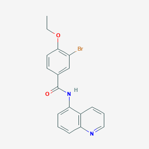 The mechanism of action of 3-bromo-4-ethoxy-N-(5-quinolinyl)benzamide involves its interaction with specific molecular targets. The quinoline moiety is known to interact with various enzymes and receptors, potentially inhibiting their activity. The exact pathways and targets depend on the specific application and the biological system being studied.