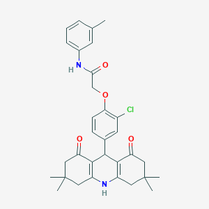 2-[2-chloro-4-(3,3,6,6-tetramethyl-1,8-dioxo-1,2,3,4,5,6,7,8,9,10-decahydro-9-acridinyl)phenoxy]-N-(3-methylphenyl)acetamide is a useful research compound. Its molecular formula is C32H35ClN2O4 and its molecular weight is 547.1 g/mol. The purity is usually 95%.