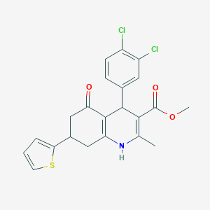 methyl 4-(3,4-dichlorophenyl)-2-methyl-5-oxo-7-(thiophen-2-yl)-1,4,5,6,7,8-hexahydroquinoline-3-carboxylate is a complex organic compound known for its diverse applications in scientific research. This compound features a quinoline core, which is a heterocyclic aromatic organic compound, and is substituted with various functional groups, including a dichlorophenyl group, a thienyl group, and a carboxylate ester. These substitutions confer unique chemical properties and potential biological activities to the compound.