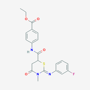 Ethyl 4-[[2-(3-fluorophenyl)imino-3-methyl-4-oxo-1,3-thiazinane-6-carbonyl]amino]benzoate is a useful research compound. Its molecular formula is C21H20FN3O4S and its molecular weight is 429.5g/mol. The purity is usually 95%.