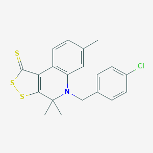 5-(4-chlorobenzyl)-4,4,7-trimethyl-4,5-dihydro-1H-[1,2]dithiolo[3,4-c]quinoline-1-thione is a useful research compound. Its molecular formula is C20H18ClNS3 and its molecular weight is 404g/mol. The purity is usually 95%.