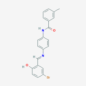 N-{4-[(5-bromo-2-hydroxybenzylidene)amino]phenyl}-3-methylbenzamide is a useful research compound. Its molecular formula is C21H17BrN2O2 and its molecular weight is 409.3g/mol. The purity is usually 95%.