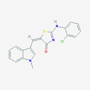 (5E)-2-(2-chloroanilino)-5-[(1-methylindol-3-yl)methylidene]-1,3-thiazol-4-one is a useful research compound. Its molecular formula is C19H14ClN3OS and its molecular weight is 367.9g/mol. The purity is usually 95%.