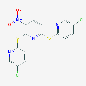 2,6-Bis[(5-chloro-2-pyridinyl)sulfanyl]-3-nitropyridine is a useful research compound. Its molecular formula is C15H8Cl2N4O2S2 and its molecular weight is 411.3g/mol. The purity is usually 95%.