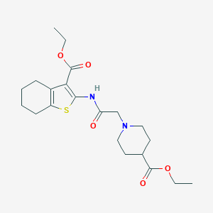 Ethyl 1-(2-{[3-(ethoxycarbonyl)-4,5,6,7-tetrahydro-1-benzothien-2-yl]amino}-2-oxoethyl)-4-piperidinecarboxylate is a useful research compound. Its molecular formula is C21H30N2O5S and its molecular weight is 422.5g/mol. The purity is usually 95%.