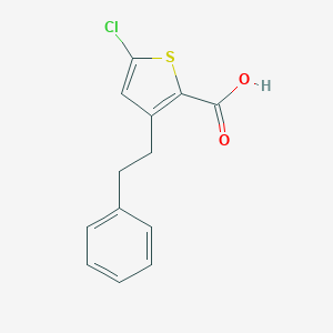 The mechanism of action of 5-Chloro-3-phenethylthiophene-2-carboxylic acid involves its interaction with specific molecular targets, such as enzymes or receptors. The exact pathways and targets can vary depending on the specific application and the biological system being studied .
