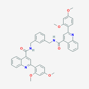 COC1=CC(=C(C=C1)C2=NC3=CC=CC=C3C(=C2)C(=O)NCC4=CC(=CC=C4)CNC(=O)C5=CC(=NC6=CC=CC=C65)C7=C(C=C(C=C7)OC)OC)OC |