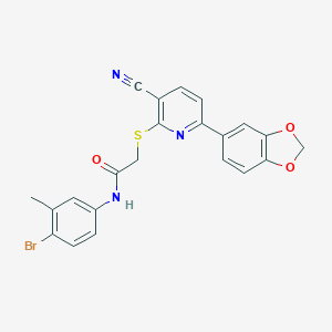 2-{[6-(1,3-benzodioxol-5-yl)-3-cyanopyridin-2-yl]sulfanyl}-N-(4-bromo-3-methylphenyl)acetamide is a useful research compound. Its molecular formula is C22H16BrN3O3S and its molecular weight is 482.4g/mol. The purity is usually 95%.