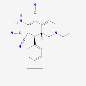 6-amino-8-(4-tert-butylphenyl)-2-isopropyl-2,3,8,8a-tetrahydro-5,7,7(1H)-isoquinolinetricarbonitrile is a useful research compound. Its molecular formula is C25H29N5 and its molecular weight is 399.5g/mol. The purity is usually 95%.
