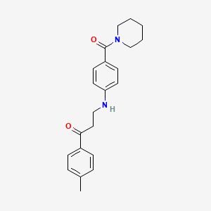 1-(4-Methylphenyl)-3-[4-(piperidine-1-carbonyl)anilino]propan-1-one is a complex organic compound that has garnered interest in various scientific fields due to its unique chemical structure and potential applications. This compound features a combination of aromatic and heterocyclic elements, making it a versatile candidate for research and industrial applications.