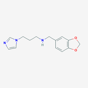 [(2H-1,3-benzodioxol-5-yl)methyl][3-(1H-imidazol-1-yl)propyl]amine is a compound of significant interest in medicinal chemistry due to its structural features and potential biological activities. This article explores its biological activity, including mechanisms of action, pharmacological effects, and relevant case studies.