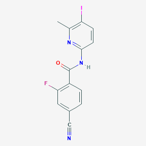 4-cyano-2-fluoro-N-(5-iodo-6-methyl-2-pyridinyl)benzamide is a useful research compound. Its molecular formula is C14H9FIN3O and its molecular weight is 381.14g/mol. The purity is usually 95%.