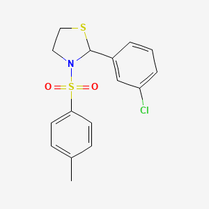 2-(3-chlorophenyl)-3-[(4-methylphenyl)sulfonyl]-1,3-thiazolidine is a useful research compound. Its molecular formula is C16H16ClNO2S2 and its molecular weight is 353.9 g/mol. The purity is usually 95%.