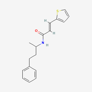 The synthesis of (2E)-N-(4-phenylbutan-2-yl)-3-(thiophen-2-yl)prop-2-enamide typically involves the reaction of 4-phenylbutan-2-amine with 3-(thiophen-2-yl)prop-2-enoic acid under specific conditions. The reaction is usually carried out in the presence of a coupling agent such as EDCI (1-ethyl-3-(3-dimethylaminopropyl)carbodiimide) and a base like triethylamine to facilitate the formation of the amide bond.