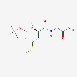 The chemical properties of N-tert-Butoxycarbonyl-L-methionyl-glycine are largely dictated by the presence of the tert-butyloxycarbonyl protecting group and the inherent reactivity of the peptide backbone. The tert-butyloxycarbonyl group serves as an acid-labile protecting group, meaning it can be selectively removed under mild acidic conditions without affecting other sensitive functionalities within the molecule. This characteristic makes the compound particularly valuable in stepwise peptide synthesis protocols where selective deprotection is required.