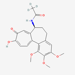 The synthesis of this compound is a two-step process that begins with the deacetylation of colchicine to yield colchiceine, followed by the N-acetylation of colchiceine with a deuterated acetyl source.