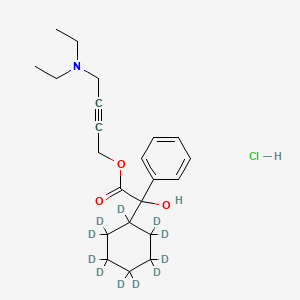 While the precise synthesis of this compound is often proprietary, it would involve a sequence of reactions adapted from the synthesis of non-labeled oxybutynin (B1027), using deuterated precursors. mdpi.com For example, the synthesis could involve coupling a deuterated version of 2-cyclohexyl-2-hydroxy-2-phenylacetic acid with a deuterated form of 4-diethylamino-2-butyn-1-ol. mdpi.com The "-d11" designation indicates that eleven hydrogen atoms have been replaced by deuterium, likely on the cyclohexyl ring and/or the diethylamino ethyl groups, which are known sites of metabolic activity.