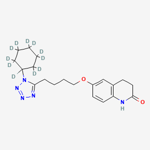 The synthesis of this compound hinges on the preparation of a key deuterated intermediate, 1-(Cyclohexyl-d11)-5-(4-chlorobutyl)tetrazole. This intermediate is then reacted with 6-hydroxy-3,4-dihydroquinolin-2-one to yield the final product.
