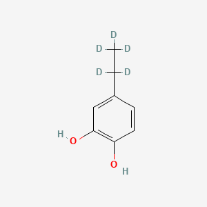 This compound is a stable isotope-labeled form of 4-ethylcatechol, a phenolic compound found in various natural sources and recognized for its antioxidant and biological activities. The incorporation of five deuterium atoms in the ethyl group makes it a valuable internal standard for mass spectrometry-based quantitative analysis of 4-ethylcatechol in complex biological matrices.
