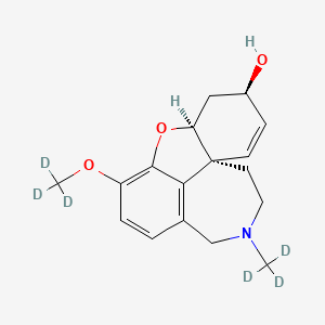 Galanthamine is a tertiary alkaloid used for the treatment of mild to moderate Alzheimer's disease. Isotopic labeling, particularly with deuterium, is a critical tool in drug development and metabolic studies. The introduction of deuterium atoms into a drug molecule can alter its pharmacokinetic profile, often leading to a slower rate of metabolism and potentially improved therapeutic efficacy. This compound, with deuterium atoms incorporated at the O-methyl and N-methyl positions, serves as a valuable internal standard for quantitative bioanalysis and as a tool for investigating the metabolic fate of galanthamine.