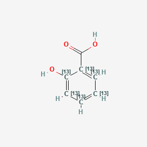 2-Hydroxy(¹³C₆)benzoic acid, also known as Salicylic Acid-¹³C₆, is a stable isotope-labeled analog of salicylic acid where the six carbon atoms of the benzene ring have been enriched with the ¹³C isotope. This labeling provides a distinct mass shift, making it an ideal internal standard for mass spectrometry-based quantification of salicylic acid in various biological matrices.