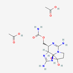 Types of Reactions: Saxitoxin diacetate undergoes various chemical reactions, including oxidation, reduction, and substitution. These reactions are crucial for modifying the compound’s structure and enhancing its properties for specific applications.