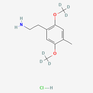 Within the phenethylamine classification system, this compound represents a substituted aromatic amine with the following structural features: a benzene ring substituted at the 2 and 5 positions with deuterated methoxy groups, a methyl group at the 4 position, and an ethylamine side chain. The hydrochloride salt formation occurs through protonation of the primary amine group, creating a stable, crystalline solid suitable for analytical and research applications.