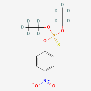 The International Union of Pure and Applied Chemistry nomenclature for this compound is (4-nitrophenoxy)-bis(1,1,2,2,2-pentadeuterioethoxy)-sulfanylidene-λ5-phosphane. Alternative systematic names include O,O-Diethyl-d10 O-(4-nitrophenyl) phosphorothioate and Phosphorothioic acid, O,O-di(ethyl-1,1,2,2,2-d5) O-(4-nitrophenyl) ester. The compound is also referenced in scientific literature and commercial applications as Parathion-d10 and Parathion-ethyl-d10.