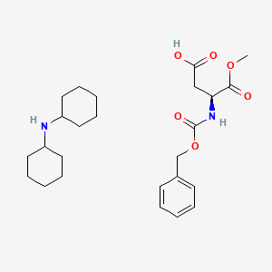 Mechanism of Action: Z-Asp-OMe DCHA exerts its effects by participating in peptide coupling reactions. The ester group of the compound reacts with amino groups of other amino acids to form peptide bonds. This reaction is facilitated by peptide coupling reagents such as dicyclohexylcarbodiimide (DCC) and N,N’-diisopropylcarbodiimide (DIC) .