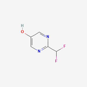The mechanism of action of 2-(Difluoromethyl)pyrimidin-5-ol involves its interaction with specific molecular targets. In biological systems, it can mimic natural nucleotides and inhibit enzymes involved in DNA and RNA synthesis. This inhibition can disrupt cellular processes, leading to antiviral or anticancer effects. The difluoromethyl group enhances the compound’s stability and binding affinity to its targets .
