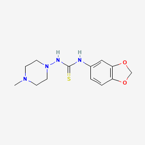 The mechanism of action of 1-(1,3-Benzodioxol-5-yl)-3-(4-methylpiperazin-1-yl)thiourea involves its interaction with specific molecular targets. The thiourea group can form hydrogen bonds with biological macromolecules, while the benzodioxole and piperazine rings can interact with hydrophobic pockets in proteins. These interactions can modulate the activity of enzymes or receptors, leading to various biological effects.