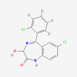 The formal chemical name for this compound is 7-chloro-5-(6-chlorophenyl-2,3,4,5-d4)-1,3-dihydro-3-hydroxy-2H-1,4-benzodiazepin-2-one, which specifies that four deuterium atoms are located on the phenyl substituent. caymanchem.com Commercially available standards of this compound typically have an isotopic purity of ≥99% for all deuterated forms (d1-d4). caymanchem.com