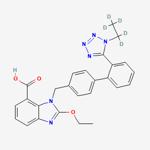 A plausible synthetic pathway could involve the reaction of a precursor like 2-ethoxy-1-((2'-(1H-tetrazol-5-yl)-[1,1'-biphenyl]-4-yl)methyl)-1H-benzo[d]imidazole-7-carboxylic acid, where the ethoxy group is first cleaved to a hydroxyl group, which is then re-alkylated with ethyl-d5-iodide. However, a more likely industrial route would involve the alkylation of a precursor before the final deprotection steps of the tetrazole and carboxylic acid functionalities.