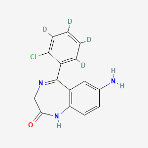 This compound is primarily utilized as an internal standard in quantitative analytical methods, such as liquid chromatography-mass spectrometry (LC-MS) or gas chromatography-mass spectrometry (GC-MS), for the accurate measurement of 7-aminoclonazepam (B1198261) in biological samples.[1][2] Its physical and chemical properties are closely related to its non-deuterated counterpart.