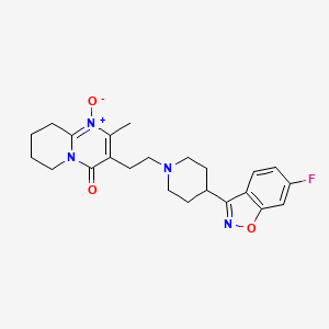 Risperidone Pyrimidinone-N-oxide, a notable impurity of the atypical antipsychotic drug risperidone, has garnered attention due to its potential biological activities and pharmacological implications. This article presents a comprehensive overview of its biological activity, including mechanisms of action, pharmacokinetics, biochemical properties, and relevant case studies.