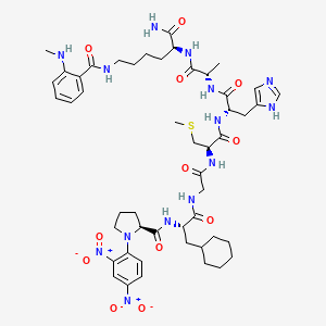 CC(C(=O)NC(CCCCNC(=O)C1=CC=CC=C1NC)C(=O)N)NC(=O)C(CC2=CN=CN2)NC(=O)C(CSC)NC(=O)CNC(=O)C(CC3CCCCC3)NC(=O)C4CCCN4C5=C(C=C(C=C5)[N+](=O)[O-])[N+](=O)[O-] | |