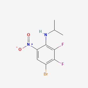4-Bromo-2,3-difluoro-N-isopropyl-6-nitroaniline is a synthetic compound belonging to the nitroaniline class, characterized by its unique substitution pattern. Its molecular formula is C9H9BrF2N2O2, featuring a bromine atom and two fluorine atoms on the aromatic ring, along with an isopropyl group attached to the nitrogen of the aniline moiety. This structural configuration contributes to its potential biological activities, particularly in pharmacology.