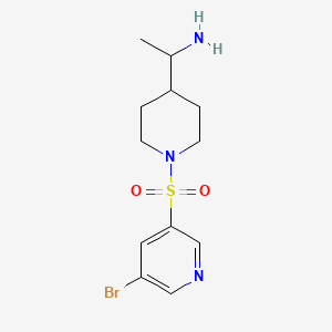 1-(1-(5-Bromopyridin-3-ylsulfonyl)piperidin-4-yl)ethanamine is a chemical compound with the molecular formula C12H18BrN3O2S and a molecular weight of 348.26 g/mol . This compound is characterized by the presence of a bromopyridine group, a sulfonyl group, and a piperidine ring, making it a versatile molecule in various chemical reactions and applications.