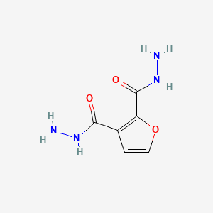 Furan-2,3-dicarbohydrazide is a heterocyclic compound featuring a furan ring substituted with two carbohydrazide groups at the 2- and 3-positions. Derivatives of dicarbohydrazides are typically synthesized via hydrazinolysis of ester precursors or condensation reactions involving acyl chlorides and hydrazine .