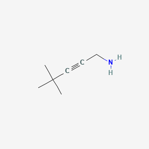 4,4-Dimethyl-2-pentyn-1-amine can be synthesized through several methods. One common approach involves the reaction of 4,4-dimethyl-2-pentyn-1-al with dialkylamines. The structure of the amine plays a crucial role in this reaction. For instance, morpholine and piperidine undergo regiospecific addition at the carbonyl bond, while diethylamine undergoes 1,4-addition .