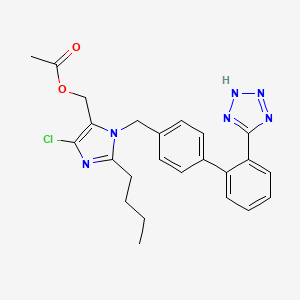 The systematic International Union of Pure and Applied Chemistry name for this compound is [2-butyl-5-chloro-3-[[4-[2-(2H-tetrazol-5-yl)phenyl]phenyl]methyl]imidazol-4-yl]methyl acetate. Alternative chemical names include 2-Butyl-4-chloro-1-[[2'-(1H-tetrazol-5-yl)biphenyl-4-yl]methyl]-1H-imidazole-5-methanol 5-acetate and (2-Butyl-4-chloro-1-((2'-(1H-tetrazol-5-yl)biphenyl-4-yl)methyl)-1H-imidazol-5-yl)methyl acetate.
